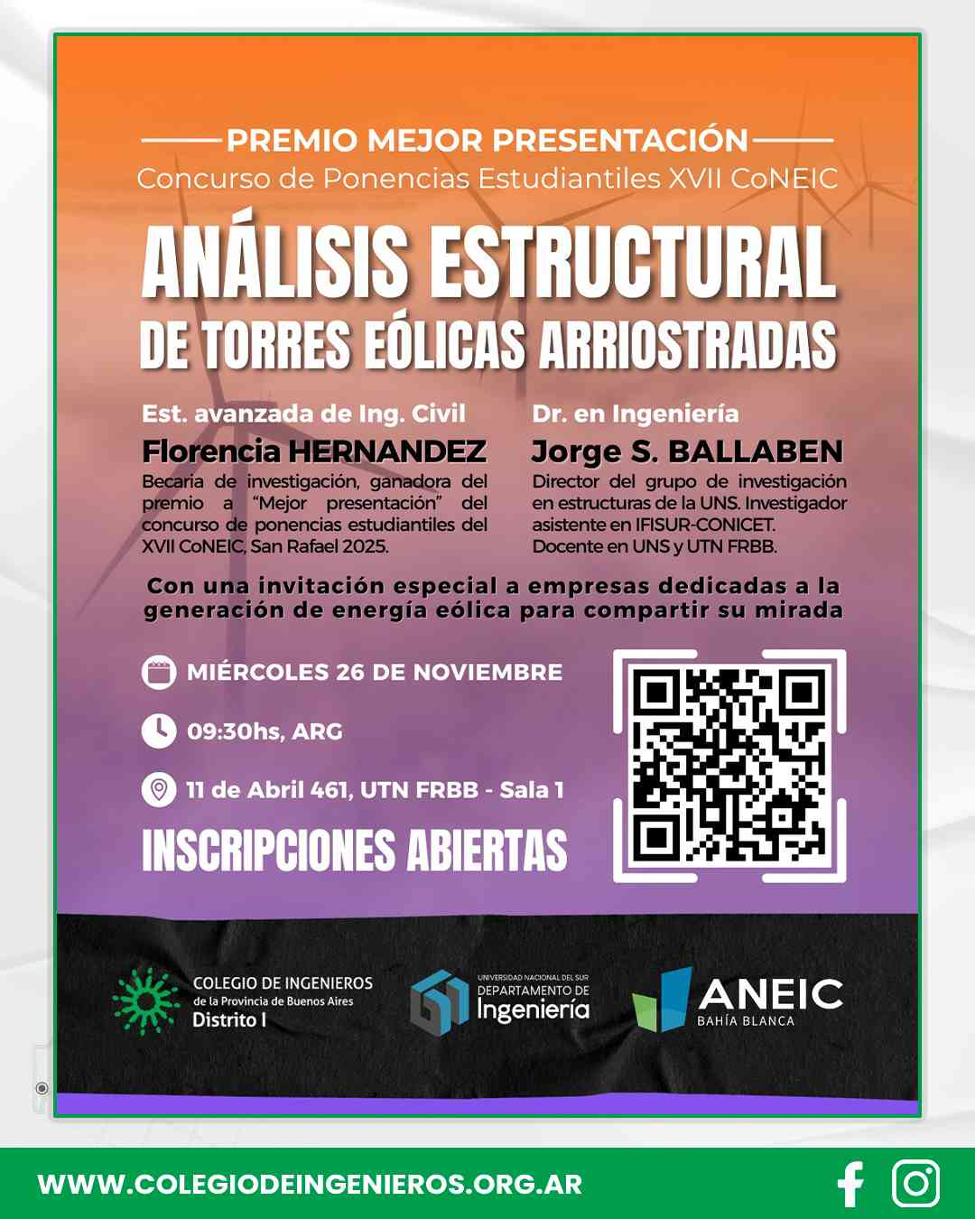 Te invitamos a participar de una charla imperdible sobre energías renovables y análisis estructural de torres eólicas arriostradas.