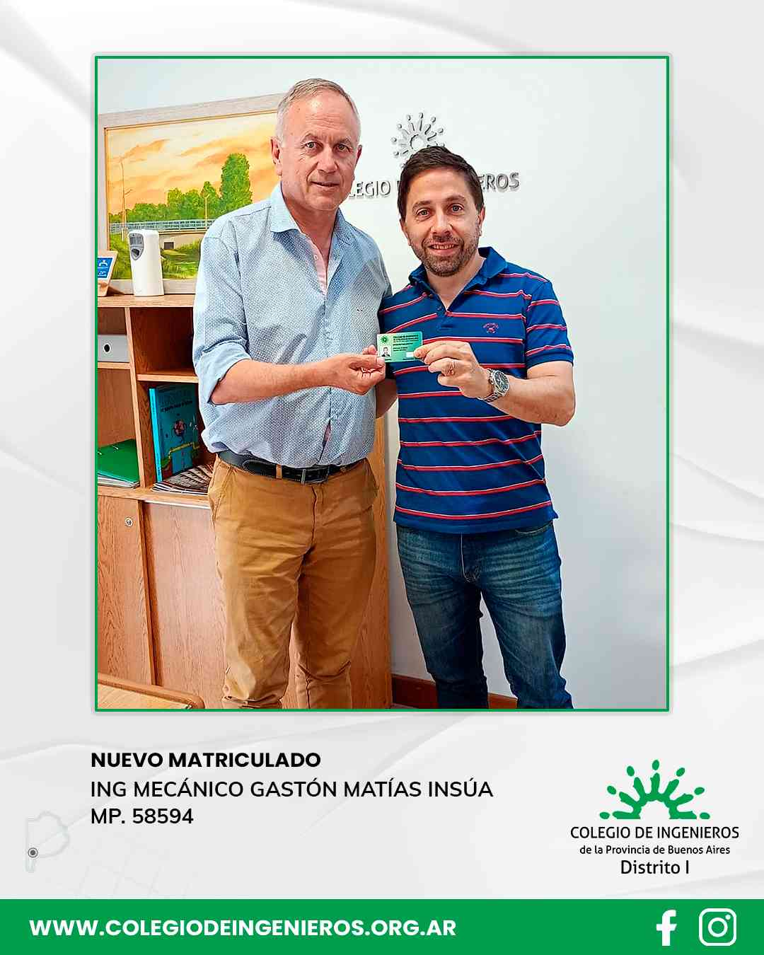 Ing. Mecánico Gastón Matías Insúa - MP. 58594