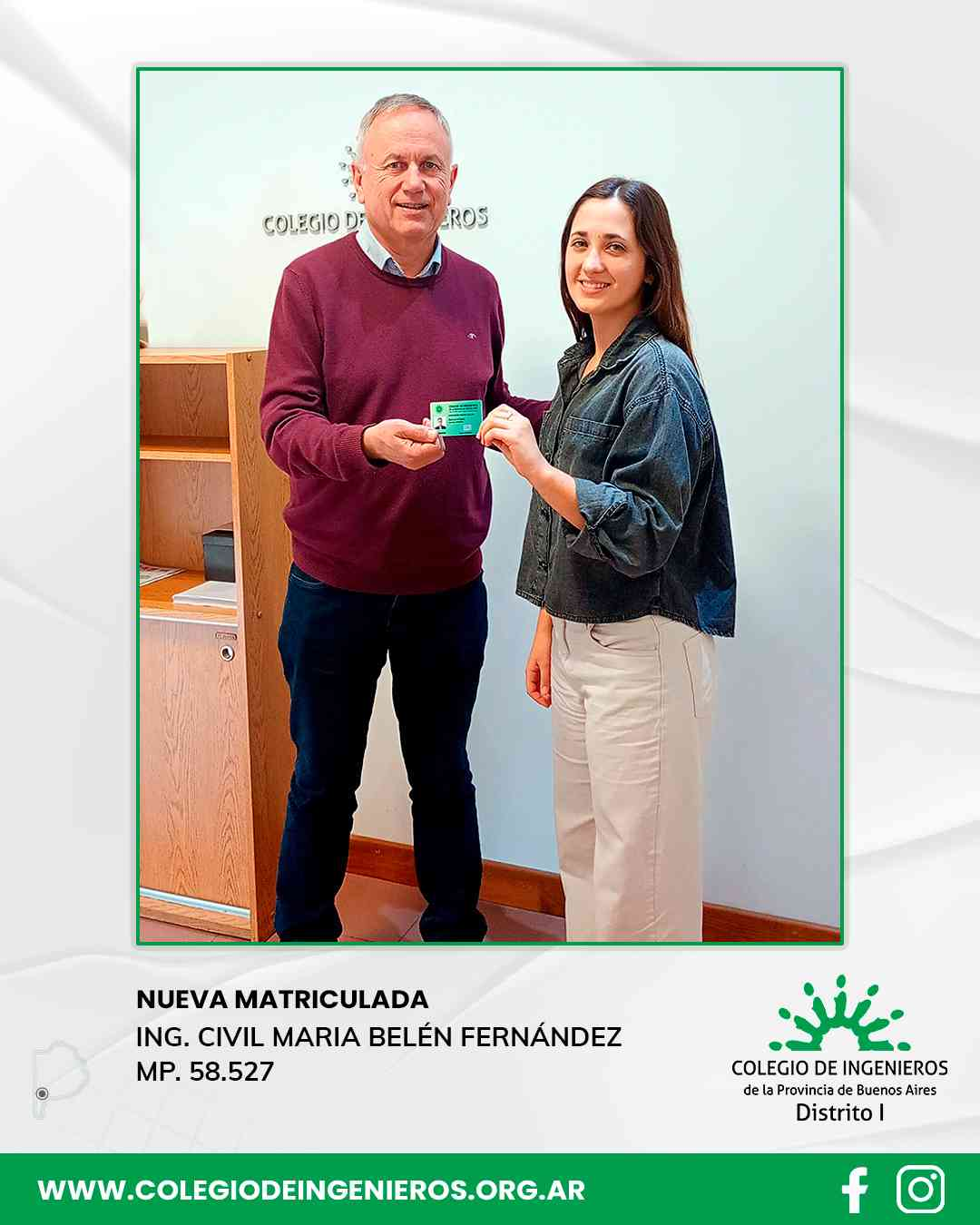 Reunión de bienvenida con la nueva matriculada e instrucción por parte del Presidente del Distrito I, Ing. Ricardo Kloster, sobre la responsabilidad del ejercicio profesional según las Leyes Colegiales