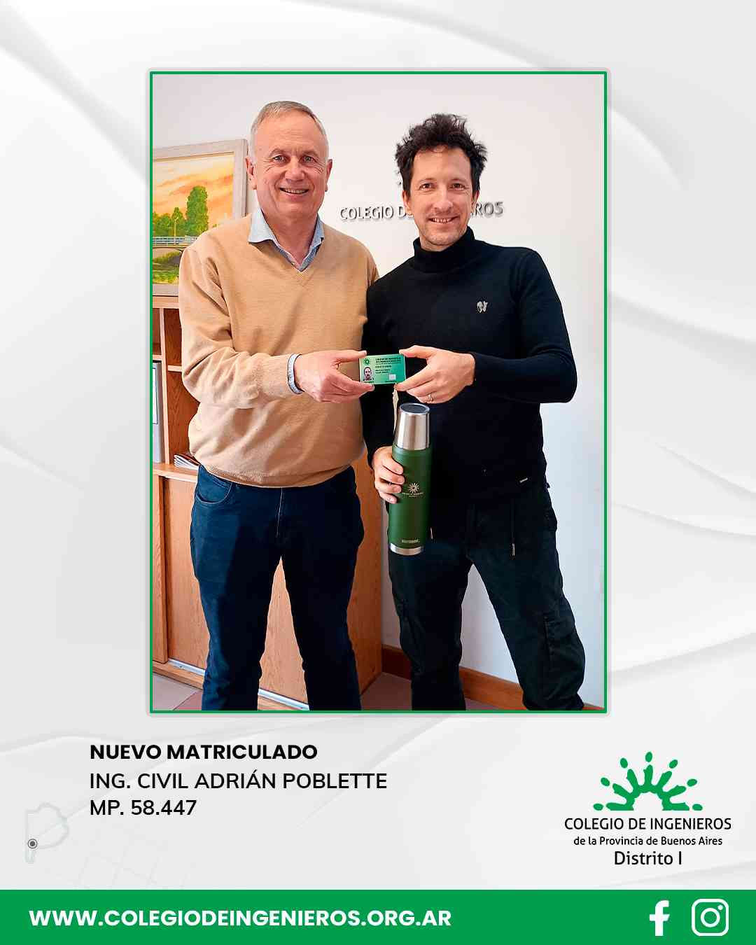 Reunión de bienvenida con el nuevo matriculado e instrucción por parte del Presidente del Distrito I, Ing. Ricardo Kloster, sobre la responsabilidad del ejercicio profesional según las Leyes Colegiales